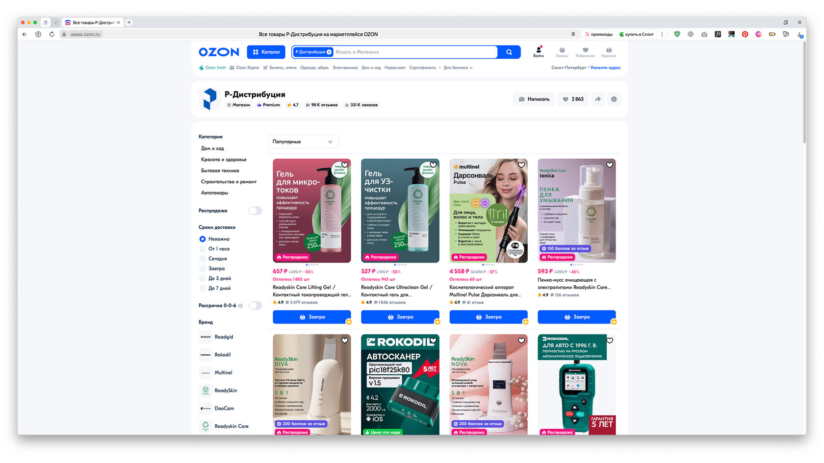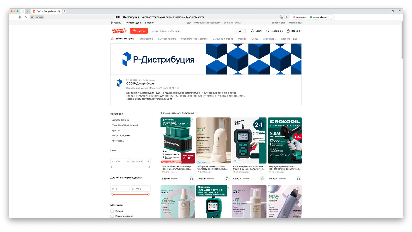 Р-Дистрибуция продаёт брендовый товар через маркетплейсы. Потребитель не отличал официального продавца от серого: доверие к листингу не формировалось. Требовался знак, который идентифицирует, а не иллюстрирует — без буквальных образов товара или сервиса.